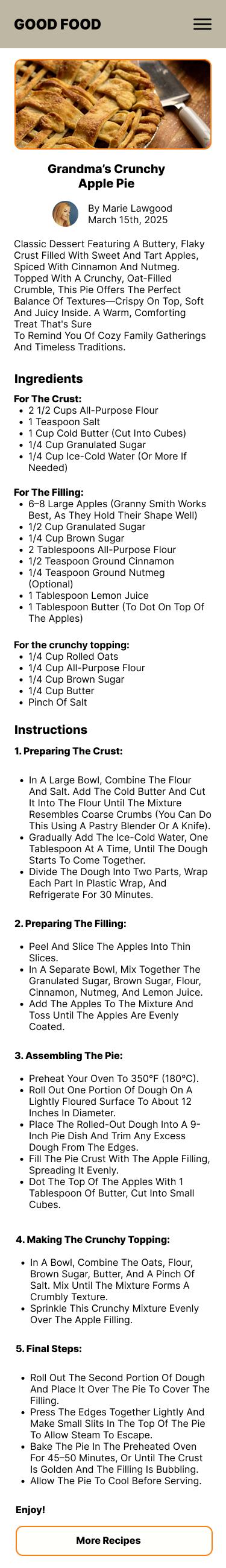 Recipes and food imagery take center stage, allowing users to quickly scan and engage with content without visual clutter.