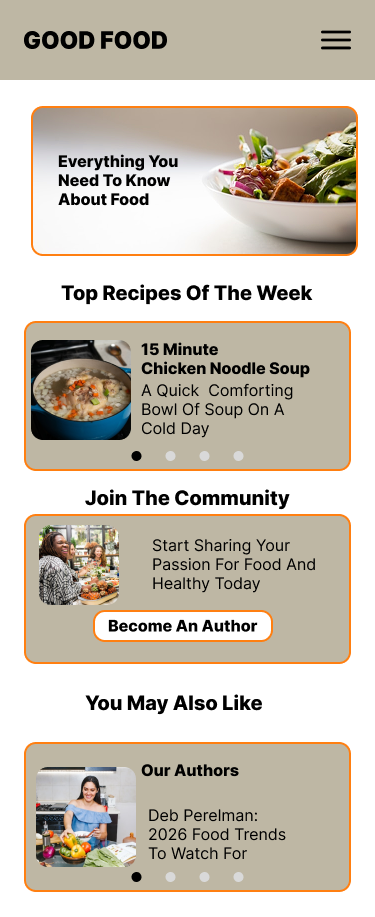 The challenge for this sprint was to create a clean and inviting food blog experience that allows users to easily browse content while maintaining a strong visual identity.