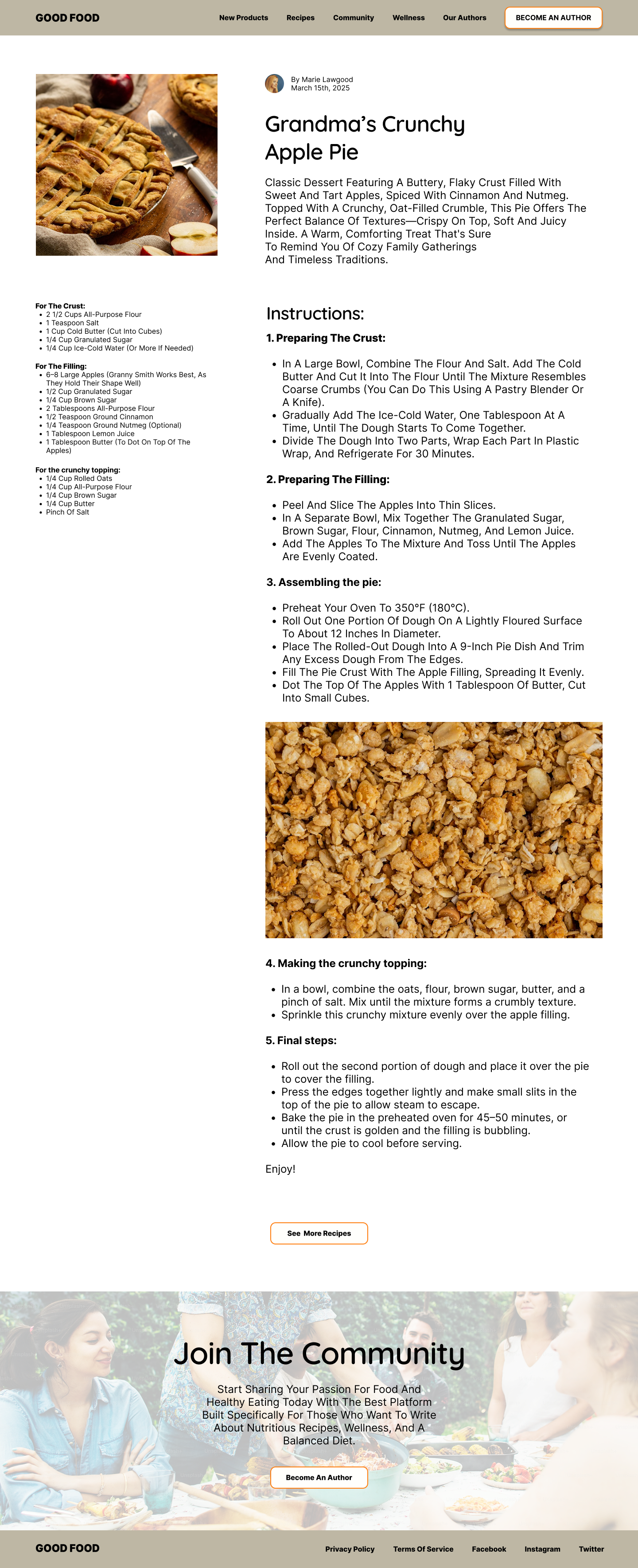 This project began as an instructional sprint focused on learning how to design and structure a food blog. While the sprint provided a basic framework, I used the opportunity to explore my own visual style and UX decisions, turning the exercise into a more personalized design project.